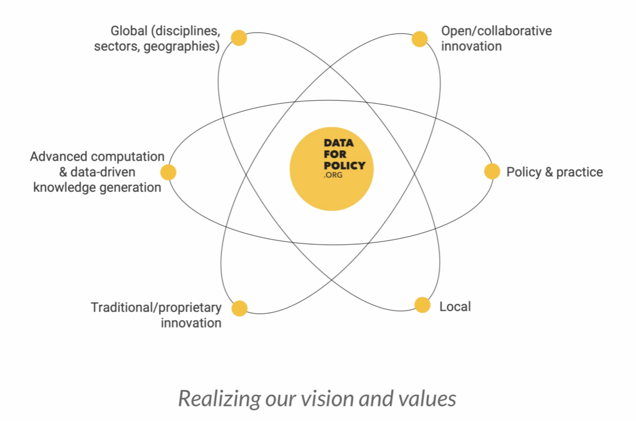Engin博士详细阐述了其团队以实现"数据赋能政策"为核心理念,致力于通过前沿技术方法提升关键决策质量,构建更加知情、公平、可持续的未来。其独特的三轴对话框架系统性地涵盖了数据驱动的治理转型、技术与分析、政策素养、伦理与信任、算法治理以及全球挑战等关键维度。她特别通过三轴对话框架图说明了组织的核心理念:在全球视野与地方实践、尖端计算与政策需求、开放创新与传统模式之间寻求最佳平衡。