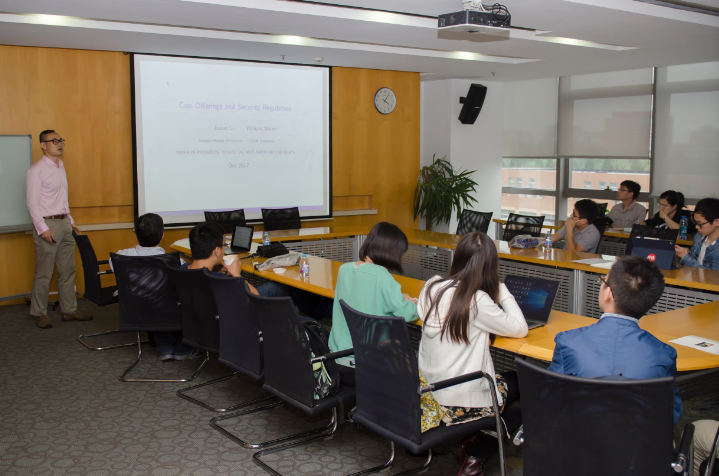 614会议室举行。美国乔治梅森大学金融学助理教授Jiasun Li(李家荪)应邀做了题为“Coin Offering and Security Regulation”的学术报告,讨论了首次代币公开发行(ICOs)怎样创造价值这个问题。报告会由中国社会主义市场经济研究中心王永钦教授主持。
