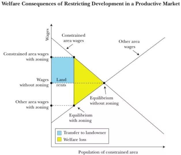 由于美国生产率较高的地区住房受到管控,导致劳动力无法流入,转而流向工资和房价较低的地区,对美国的生产总值造成了负面影响。