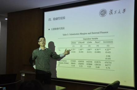 805会议室举行。唐珏博士就Eric Zwick和James Mahon合作的论文“TAX POLICY AND HETEROGENEOUS INVESTMENT BEHAVIOR”进行解读与汇报,在场的师生对此进行了积极的讨论。