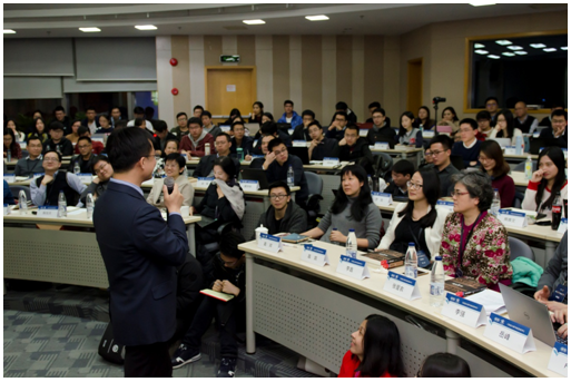 本次课程不仅受到在校师生的热烈欢迎,还吸引了众多校外金融从业者参与。本容纳70余人的201报告厅,最终有110多人聆听林先生演讲,座无虚席,气氛热烈。林利军先生语言幽默,思维敏锐,旁征博引,内容充实,分析详尽,博得听课师生的阵阵掌声与喝彩声。听课学生普遍反映气氛热烈,收获很大,希望在后续学习过程中,可以跟随林先生学习更多、更深且有可操作性的投资经验。