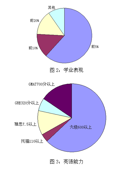 入营学生在学校学业表现、英语技能、专业研究等方面均有优秀表现,他们中有76%的学生排名在年级前10%,其中62%的同学成绩排名在年级前5%;有约30%的同学成绩在年级中排名前三,其中约20%的同学排名第一;31%的同学大学英语六级成绩高于600分,此外还有许多同学在各类英语考试中有优异表现,例如雅思8.0分,GMAT760分等成绩。
