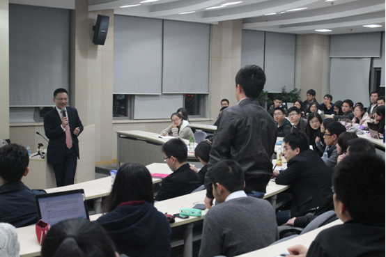 201报告厅,瑞银投资银行驻香港执行董事、固定收益交易主管林宁校友为金融硕士专业学位的同学们主讲了一场实务课程,主题为“后危机时代转变中的投资银行的结构与功能”。