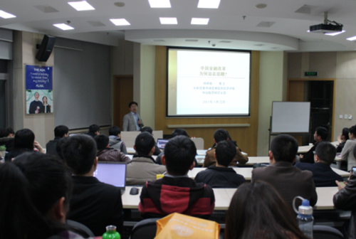 205报告厅,孙明春博士作为专业学位校外导师应邀为金融硕士班的同学们讲授专业学位实务课程。本次讲座的主题是“中国金融改革为何迫在眉睫?”