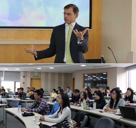 11月30日上午,瑞士再保险中国区总裁Robert Wiest先生应保险研究所副所长许闲老师的邀请,为保险硕士班的同学们主讲了一场题为'Public and private partnership in dealing with natural disasters'的课程讲座,讲解了PPP(Public and private partnership公共部门与私人部门的合作)在自然灾害风险融资中的角色与作用。