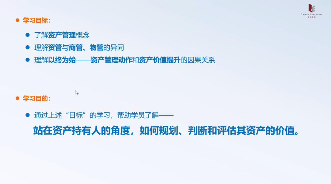 本次讲座,江涛老师主要围绕三个方面展开讲解:了解资产管理的概念,理解资管与商管、物管的异同,理解以终为始——资产管理动作和资产价值提升的因果关系。