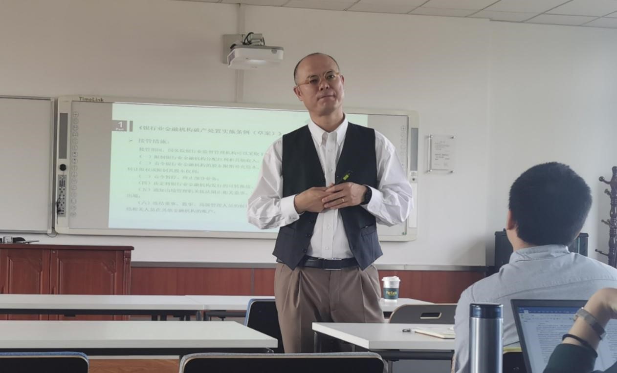 本次讲座中,陈胜老师以“什么是金融机构”这一问题作为切入点,引申到“金融机构风险处置的步骤”,主要向同学们介绍了《银行业金融机构破产处置实施条例(草案)》中的破产处置期间银行业金融机构的税收优惠、联席会议、接管条件与措施、金融衍生品交易合同的终止净额结算等重点内容。