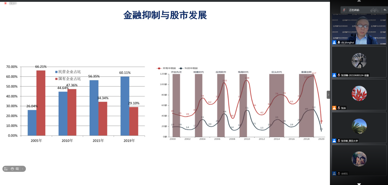 金融项目学术负责人张宗新教授主持,向全市金融硕士培养单位开放,来自上海市十余家金融硕士培养院校的200余位师生在线认真聆听,学术氛围浓厚。