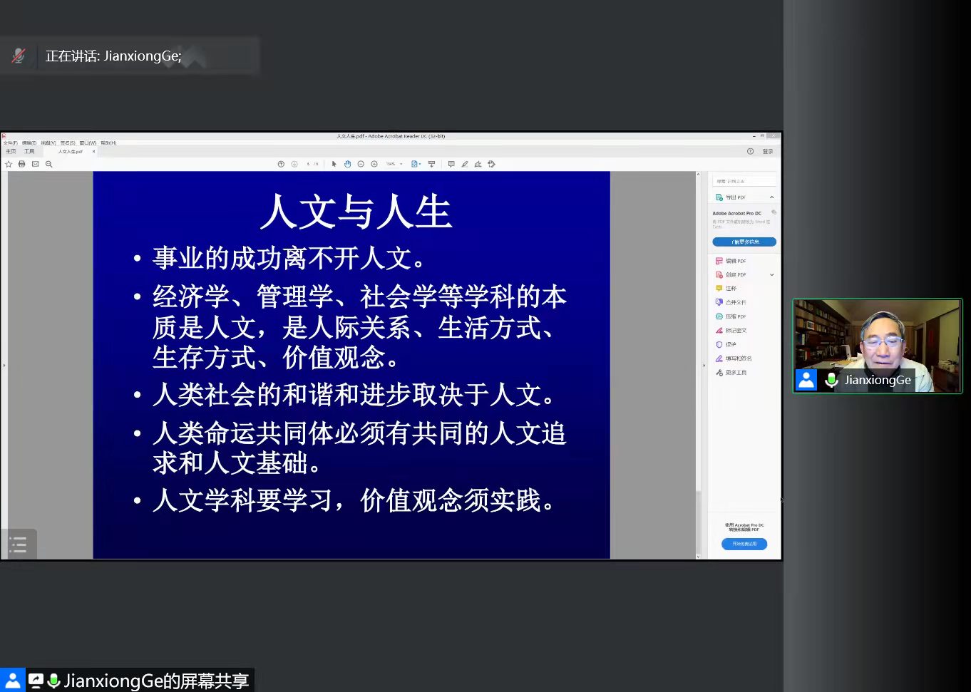 接着,葛老师从衣食住行等当今社会生活的多个领域,在诸多生动具体的实例中,将“人文”娓娓道来,揭示了“人文”在当今社会生活和个人人生中的重要地位和巨大作用。其中,就个人生活而言,葛老师从个人和家庭的幸福感、职场中的事业成功以及政治信仰三个方面,分别阐述了“人文”为何在个人生活中无处不在、无处不发挥作用。而政治信仰作为信仰的一种,是十分主观且不可被质疑的。葛老师强调,当社会发展到一定阶段,个人在追求精神方面花费的时间、精力、金钱,都将比花费在物质方面的要高得多。