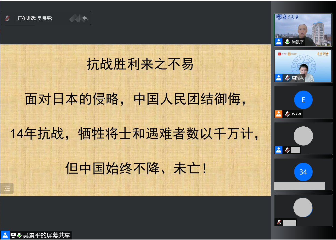 历史系吴景平教授应邀来到线上会议室,为日本av片