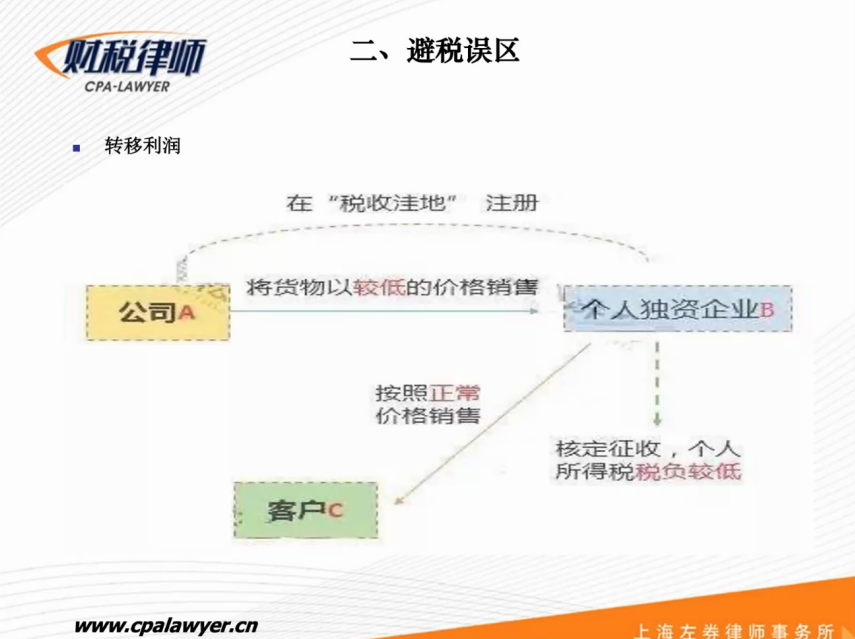 在此基础上,严老师介绍了如何在保证合理合法、履行应有纳税义务的基础之上更加合理地安排企业和个人的经营活动,并进行了模型总结。通过与H某某偷逃税案件的对比,严老师解释道,合规的做法要确保相关纳税主体进行了实质的经济业务活动,并且业务的法律形式要符合要求。例如在H某某偷逃税案件中,公司A与个人独资企业B并未进行实质的交易活动,却通过开具发票少交税款,因此违反了相关的税法条例。但在业务重构模型中,公司A与个人独资企业B进行了真实的交易活动,是符合法律规定的,同时也能合理合法地实现税收利益的最优化。但值得注意的是,少数企业或个人存在误用或滥用“核定征收”来进行避税的动机,这是不可取的。针对部分领域,国家相关部分也在陆陆续续出台文件来加以规范。例如,财务部、国家税务总局于2021年12月30日发布公告,自2022年1月1日起,对持有股票、股权、合伙企业财产份额的独资合伙企业,不得核定征收等。