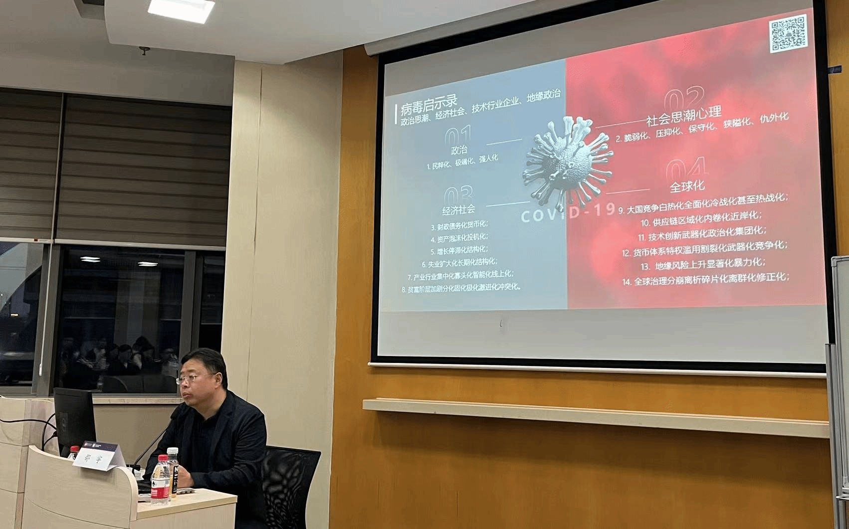 接下来,邵老师从当下疫情角度出发,将其与历史上几次重大疫情相比较,阐述了新冠疫情对今后全球经济的可能影响。从古至今,每一次重大疫情都一定程度上操纵着整个历史发展的脉搏,而新冠疫情也全方位地对世界进行了改造,我们能做的更多的是去适应这种趋势。