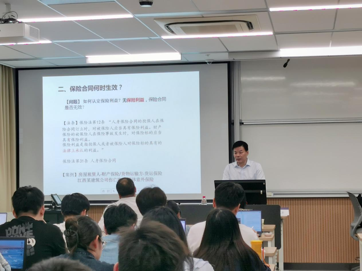 在提问交流环节,彭老师对保险实务中的财产保险重置价值赔偿以及保险代位追偿等问题进行了耐心解答,使同学们能够更全面地理解这些复杂的保险实务概念,也为他们今后在保险行业的实际工作提供了宝贵参考。