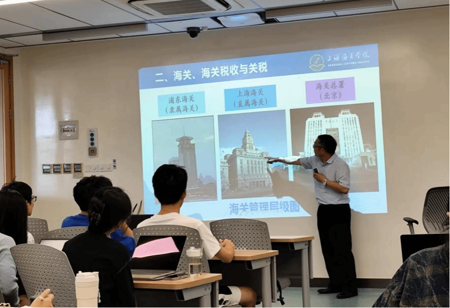 接着,钟老师讲解了海关、海关税收与关税各自的特征以及三者之间的关系,并以浦东海关、上海海关和海关总署为例,详细介绍了我国海关的三级管理体制及其主要职能划分。
