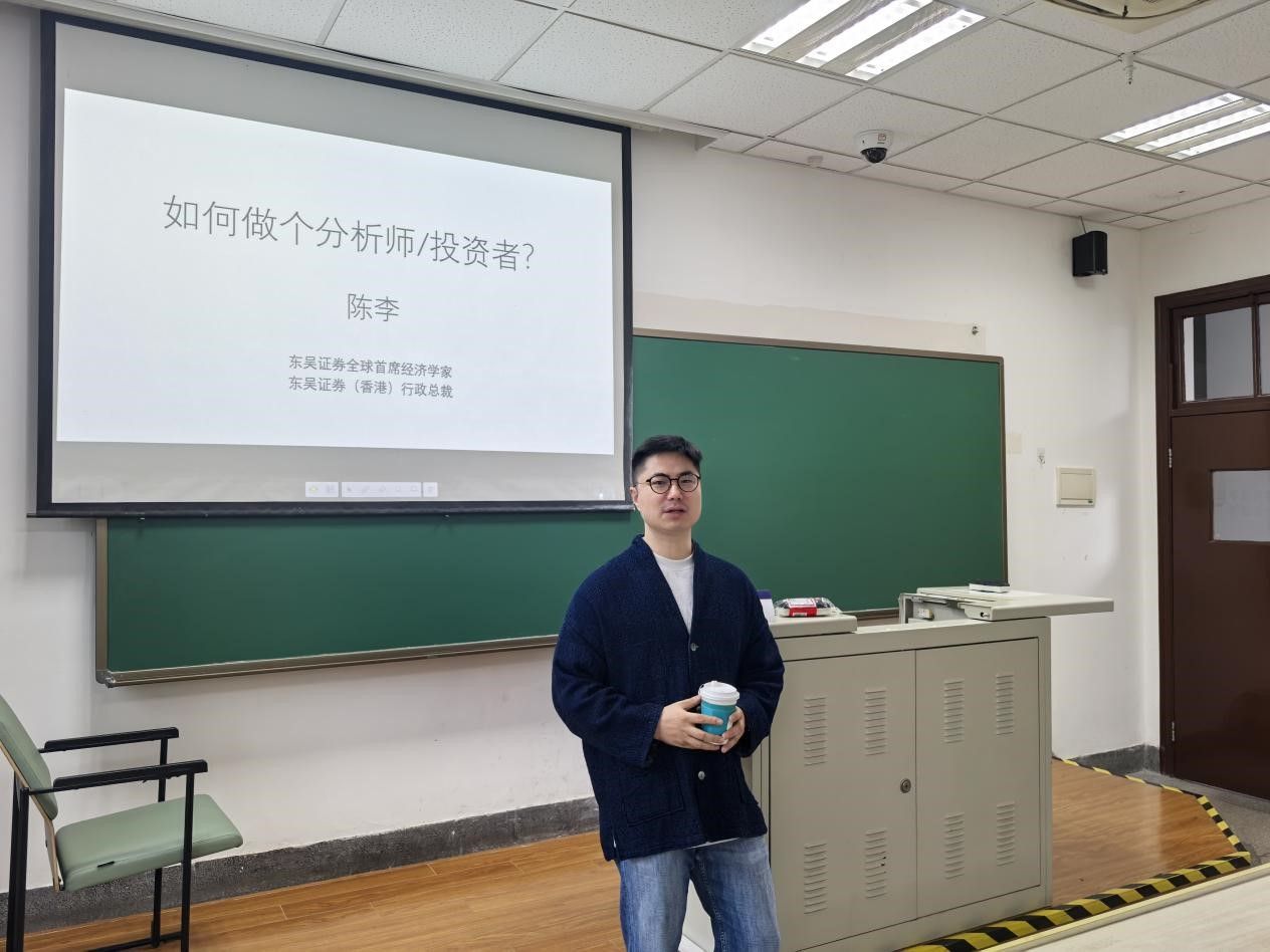 讲座尾声,陈老师和同学们进行了热烈的互动,对同学们提出的问题悉心解答,例如目前AI对分析师行业的冲击、目前美股美债走势的看法等等。令同学们受益匪浅。