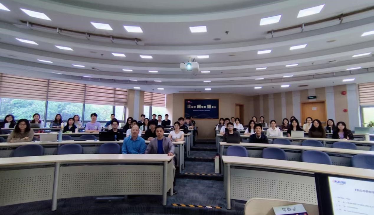 第一,是金融衍生品介绍及应用。严老师先介绍了衍生品交易的定义以及期权与期货的区别与联系,并指出在中国期货交易与衍生品交易最直接的区分标准是场内还是场外,同时列举了期货交易与衍生品交易的特征、分类,以进一步加深同学们对于基本概念的理解。接着,严老师讲述了金融衍生品在商业交易中的应用。一是套期保值,现货交易与期货交易的盈亏往往是反向的,这种商业行为“虽限制了亏损,但也阻碍了利润的生成空间”;二是“保险+期货”业务模式,主要应用场景在农产品上,通过“被保险人-保险公司-期货公司-商品期货交易所”的设置,将以大豆、玉米、小麦等为代表的农作物经营风险转移到金融市场的投资者身上;三是“三领口”组合期权,例如A企业以螺纹2110为标的,买入执行价5150元/吨的看跌期权,卖出4850元/吨的看跌期权和5250元/吨的看涨期权,在这一商业安排中,若螺纹2110价格跌破4850元,A以4850元/吨对外供货,由交易方以5150元/吨购买A的螺纹钢,使得A企业的产品每吨预计获得300元的利润,若螺纹2110价格超过5250元,A以5250元/吨对外供货,交易方会选择不行权而向A现货交易,如此则限制了A企业的亏损。综合来看“三领口”组合期权就像是“设定了衬衣的领口,A企业的利润与亏损像领口一样被限定在一个范围内”。此外,严老师还简要介绍了含权交易与互换合约,分析了其在资产配置、风险管理和投资策略制定中的独特价值,让同学们对金融衍生品的运作结构、潜在风险以及在金融市场中的重要作用有了更加全面且深入的理解,为大家在未来工作领域的学习和实践中奠定了坚实的理论基础。
