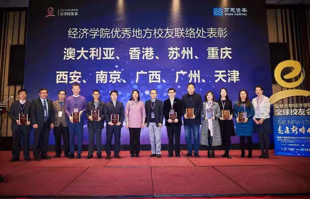 已在全球设立了28个校友联络处。自各地校友联络处组建以来,迄今已经举办了一系列丰富多彩的活动,做了大量的校友联络工作,使散布海内外的经院学子们找到了与学院校友沟通、联络的组织,也找到了一个温暖的家。而这一切,都离不开各地联络处工作人员的无私付出。学院评选出了2017年度9个优秀地方校友联络处,大会对澳大利亚、中国香港、苏州、重庆、西安、南京、广西、广州和天津联络处颁发奖状,表彰其在校友工作上的优异表现。接下来,大会举行了台湾、无锡、福建、兰州西宁联络处的授牌授证仪式。最后,全体与会校友共享重逢的喜悦、母校的荣光与经院的自豪,复旦经院全球校友会2018年会暨“走进新时代发展论坛”也在联欢晚宴中缓缓落下帷幕。