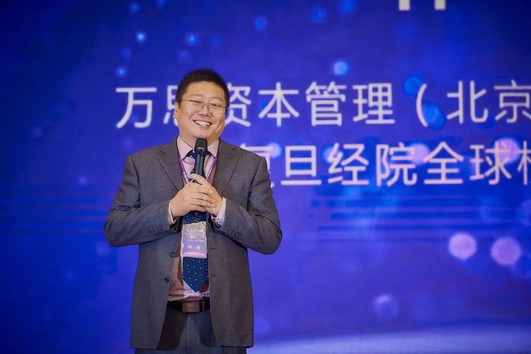 本届年会独家赞助方、万思资本管理(北京)有限公司董事长林海向大会致辞。回忆往事,林海代表校友感谢复旦经院的培养。瞩目当下,他希望各界继续全力支持全球校友会的发展。放眼未来,他期待全球校友会越办越好,成为所有经院人学习、沟通与交流的国际化高层次平台,把根永远留在复旦经院。