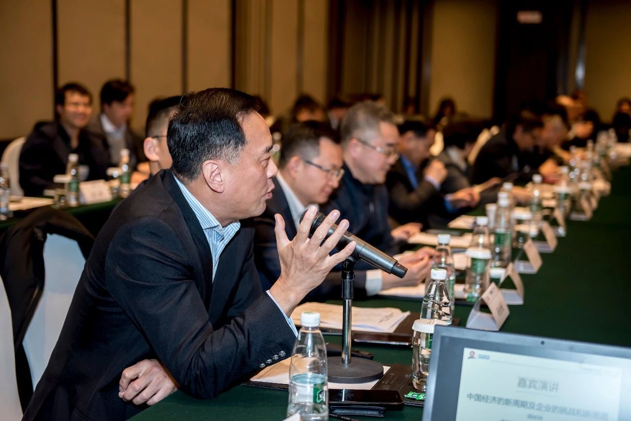 第三位演讲嘉宾是谱润投资创始合伙人及董事长周林林。周董以“中国经济的新周期及企业的挑战和新思路”为题,从实业经济的角度畅谈投资与企业的发展。首先,周董分享了谱润投资的投资经验。他以隆基股份、上海钢铁等为例,指出投资要进行大量的行业分析,并专注于培养龙头企业;应坚持做战略投资者,专注于尖端制造业,为实业经济提供有力的金融支持。周董通过梳理改革开放前后中国经济的发展阶段,清晰地再现了民营企业和国有企业的发展历程,强调金融机构需服务好实业经济的历史使命。他以化工行业为例,指出改革开放前的30年,中国为实体经济奠定了良好的人才和技术基础。进入改革开放时期,中国经济发展经历了四个阶段:第一阶段(1979-1992)是启蒙阶段,活跃的乡镇企业以承包经营的方式实现经营模式的突破;第二阶段(1992-2002)是启动阶段,民营企业的创立、外资企业的进入倒逼国有企业改制,实现所有制的突破;第三阶段(2002-2011)是大发展阶段,中国加入WTO,承接产业转移,进入世界市场;第四阶段(2011年至今)是调整阶段,在金融危机之后,经济流动性和实体经济不断地调整,以应对经济的下行,特别是在去杠杆的大环境下,民营企业的生存环境更加严峻。在新经济的情况下,金融机构应当如何投资以促进实体经济的发展?周董提出了两大问题和挑战:其一是服务好实体经济的升级需求;其二是促进产业结构的调整,培育龙头企业,提高研发水平,整合好行业,让中国企业走向世界。最后,周董就研发体制、新技术的推广等问题同与会嘉宾进行了热烈的讨论。
