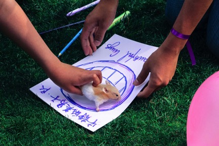 随着沙龙开始时间的临近,主席团成员及各部门骨干们纷纷来到了绿草如茵的大草坪,并进行了随机抽签,组成了红、绿、黄、粉、紫五支队伍,向着最终目标“撕名牌”活动进发。