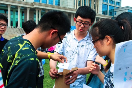 第二个游戏“同舟共济”考验的则是同学们的默契与团队合作。每个组各自有若干张报纸,组员要想办法在不用手和脚的情况下完成接力,在3分钟内传递报纸数量最多的小组获胜并赢得一张技能牌,除了在游戏中同学们的表现颇为出色,游戏后各队也主动捡起垃圾,整理场地,对校园的爱护正体现在点点滴滴的细节当中。
