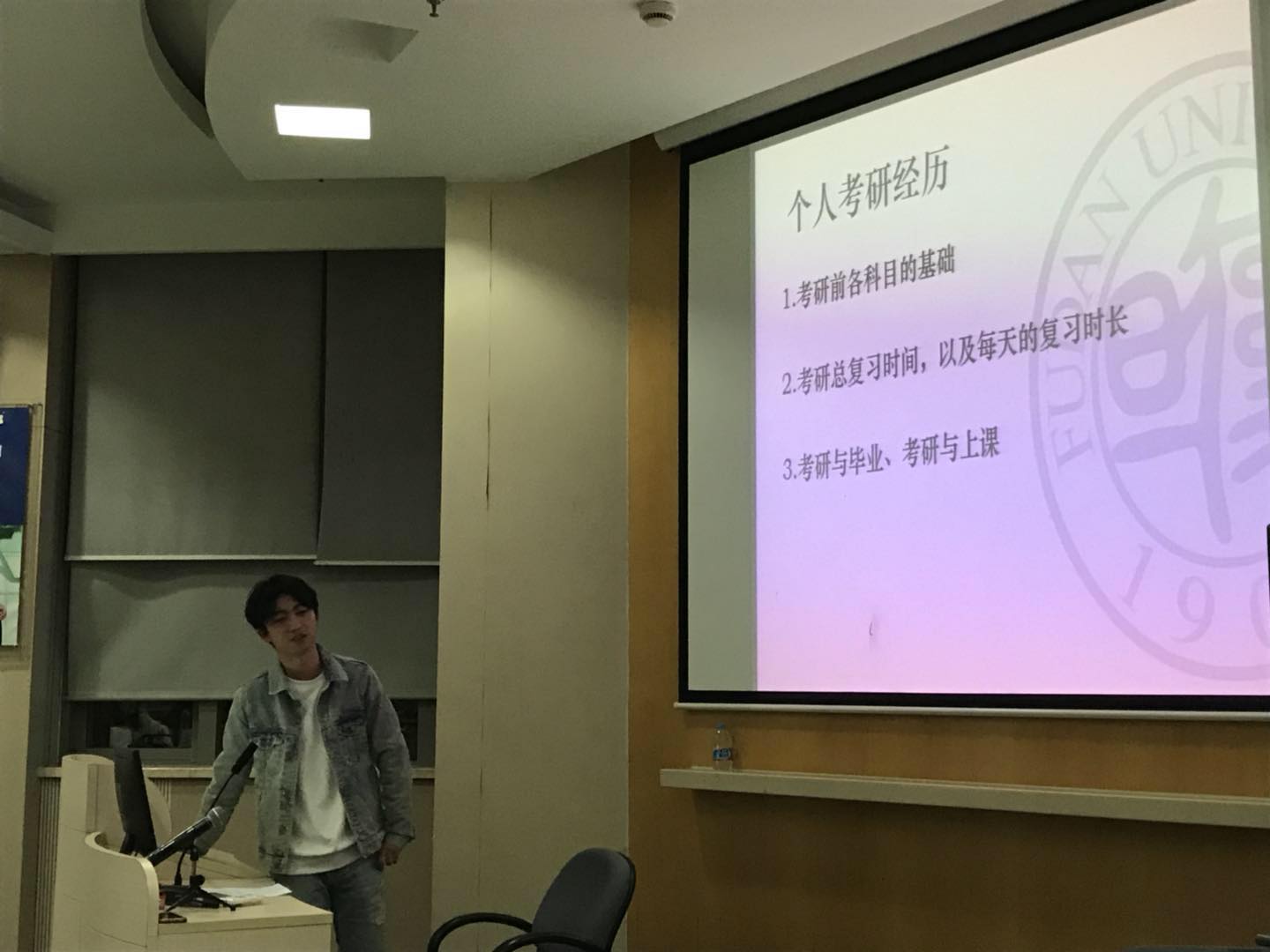 学硕的考研情况,然后开始有重点地为大家分析考研各个科目的特点和应对技巧,其中既包括复习时间分配,也包括临考时的小技巧。在场的同学们都在奋笔记下学长分享的经验,不希望错过一个细节。