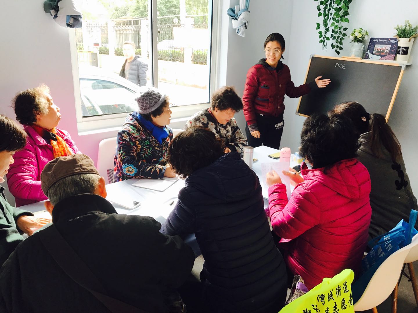 12月1日下午,几位志愿者一同前往政立路社区参加“青丝白发,心手相连”活动,与政立路的老人们进行英语和上海话的交流学习。期末季即将到来,这是本学期最后一次活动,志愿者们对本学期的内容进行了系统的复习,希望老人对英语基本的常用语有一个大致的了解和掌握。之后,大家一同唱起了本学期学过的字母歌和英文歌,并学习了以食物为主题的新课。在活动的尾声,老人和志愿者们依依不舍地拉着彼此的手,约定下一个学期继续一起学习、一起做游戏。