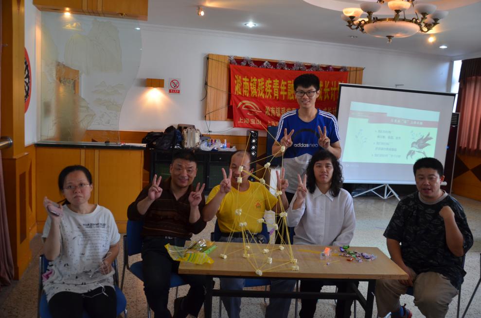早早地抵达阳光家园,队员们分头对活动场地进行布置,将精心购置的糖果果冻发放到每组学员手中,现场也响起了《小跳蛙》的活泼曲调。“老师,我能不能吃大白兔奶糖?”他们脸上的纯真让我们略带忐忑的心情平复下来,很快和他们打开了话匣子。