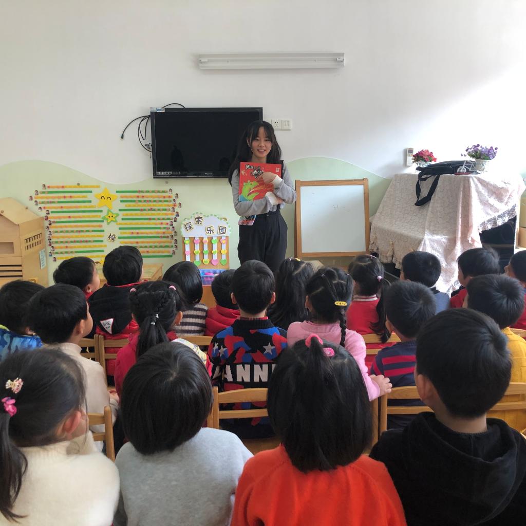 的四位同学来到杨浦区民星幼儿园,与小朋友们开展了一次愉快的“快乐星期二”活动。活动分为讲述绘本故事和做游戏两个环节。