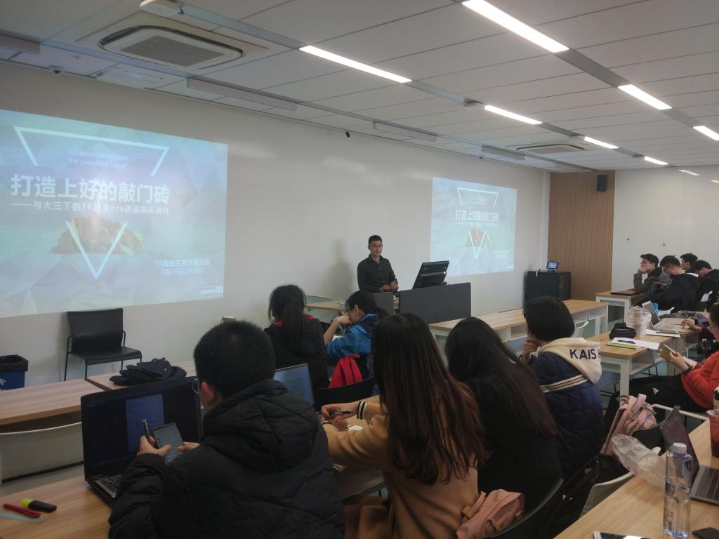其次老师针对一部分同学没有实习经历的情况,提出了可以选择用其他经历来丰富自己简历的办法,比如自己在学生组织、社会实践或社团中的经历,并着重突出自己的快速学习能力以及所申请的职位所偏好的能力,摆脱零实习很难找到第一份实习的窘境。