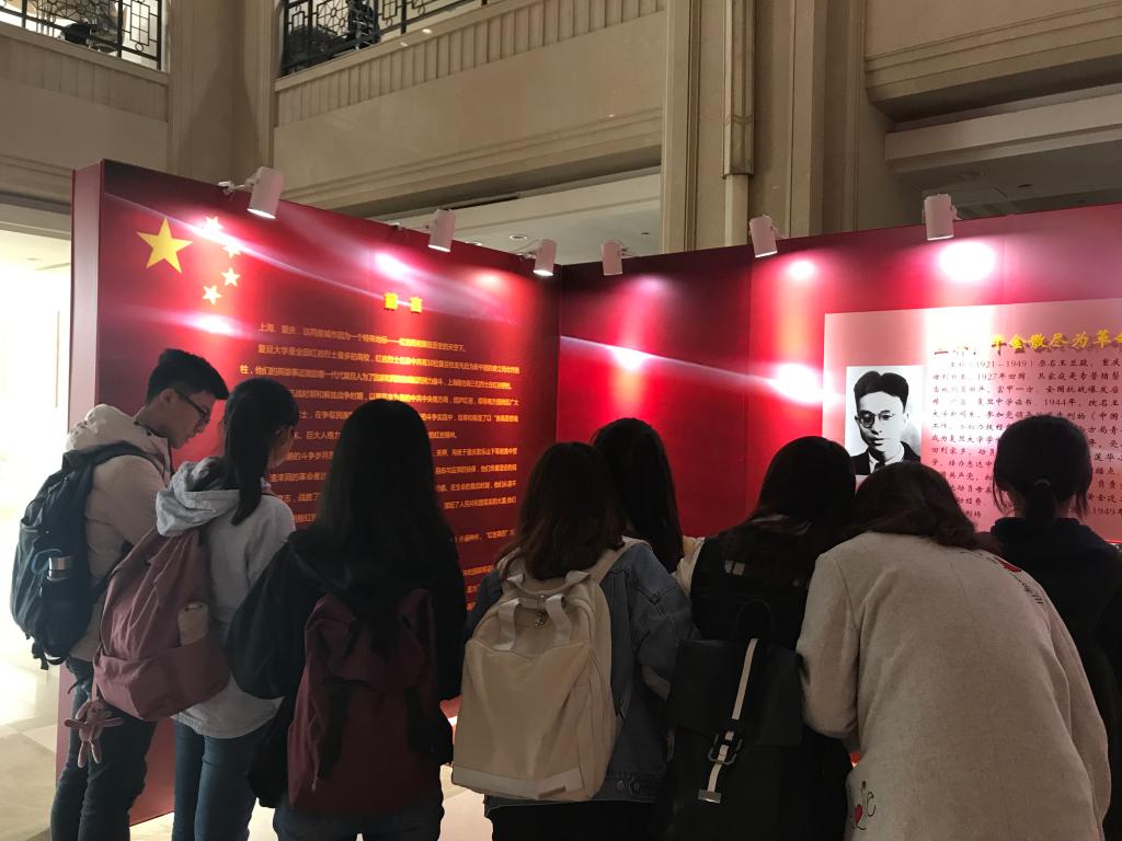 赵明明同学说,今年是新中国成立70周年,生活在和平年代的我们,可能无法想象七十年前的血雨腥风。但是今天的展览却将我们带进了那个伟大却又悲壮的时代。展览的十位烈士都是复旦的校友,在和安逸学习的我们一样的年纪时,却义无反顾的投入了革命的洪流。他们不是穷苦人家的儿子,他们普遍家境富有,但却没有选择安于一隅,而是冲向了革命与战争的前线。在他们的心中有一种强大的精神信仰,支持着他们在重重迷雾的环境下依然能够看到前方胜利的光芒。
