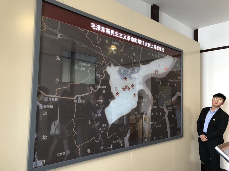 毛泽东一生多次来到上海,甲秀里是他在上海居住时间最长的地方。毛泽东旧居是一座老式石库门建筑,修缮后更显得古朴美观。走入其间,首先可见院子角落处设立的毛泽东一家的雕塑,为这位中国伟大领袖添以平实温情的色彩。再步入住宅小楼,便可见木制的狭窄楼梯连接上下楼层,行廊与房间的墙壁上陈列着各色史料文献,记述伟人在此居住工作的事迹以及同时期社会重大事件。其中不乏一些令人印象深刻的细节,如中共一大参会者以“北大师生暑期旅行团”的名义保证与会安全、形势严峻时党内重要人士不得与家人留下合照等。同学们随着讲解员依次参观了各个陈列室,深切感受到了中共党人领导新民主主义革命、建立新中国的艰辛与伟大。