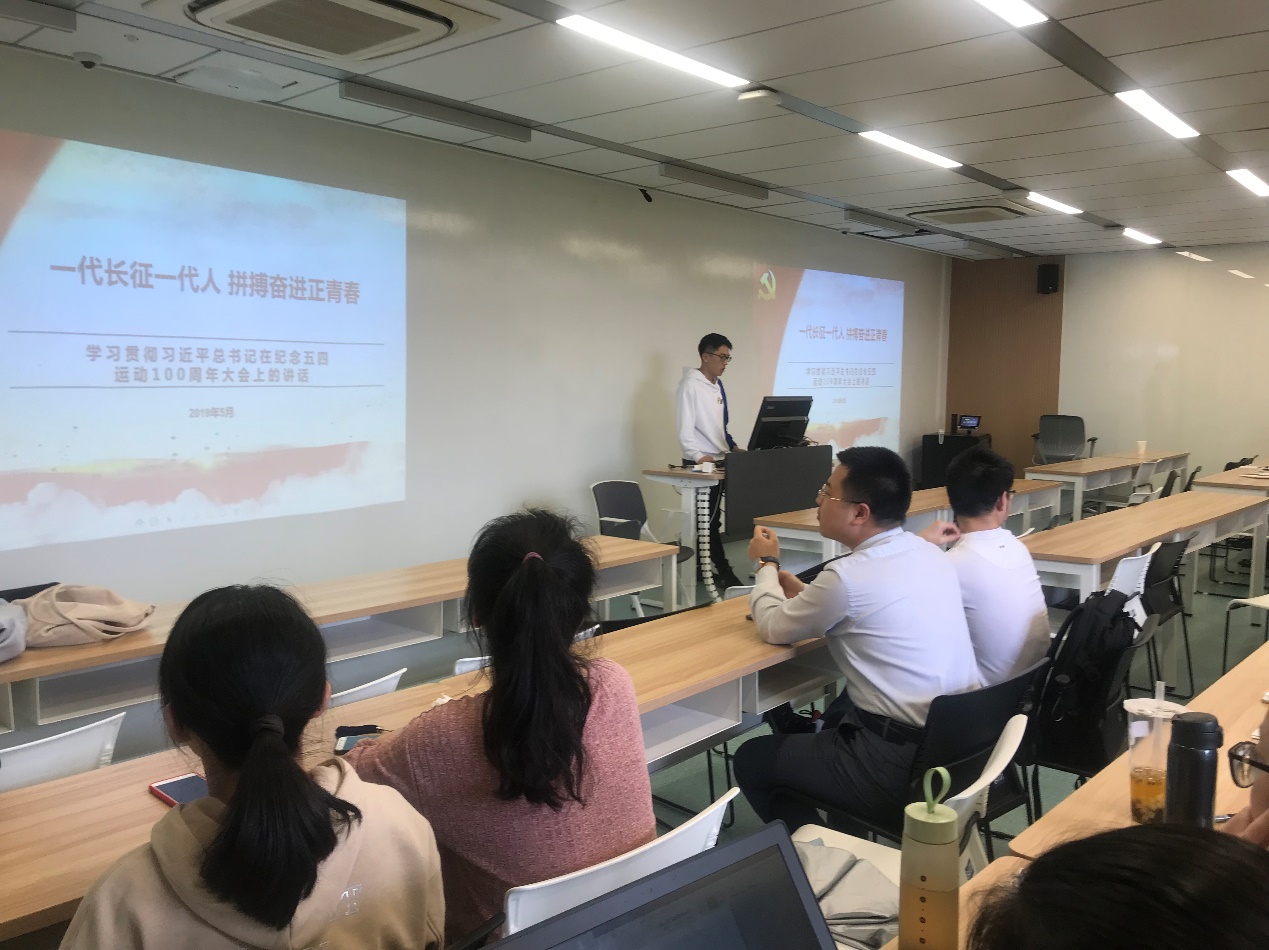 随后刘祺轩带大家学习回顾了习近平总书记的讲话,并随机选取了几位同学发表感想。李泽华同学认为,五四运动在中国近代史上具有重要的意义,虽然经历了一百年,但是五四精神并没有过时,作为新时代的青年,我们应该要传承五四精神。孙英哲同学认为,五四运动所传达的精神还有很多值得我们继续学习,我们不能忘记这段历史。张海涛同学表示,五四运动传达的很重要的是爱国精神,在当下的国际环境下,我们更应牢记一百年前的历史,感受其中的爱国情怀。