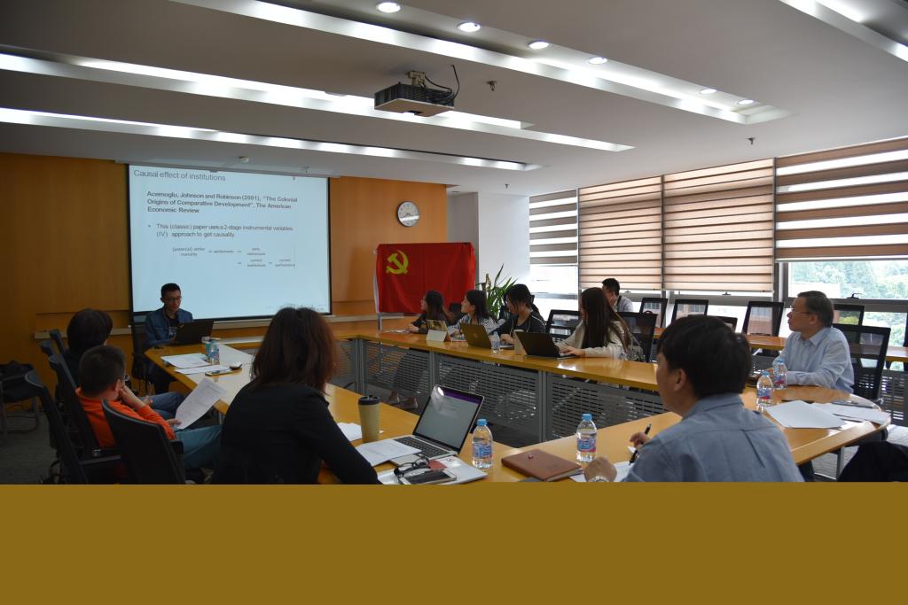教师党支部的老师,老师们对于本次党章学习小组活动十分热情,共有汪立鑫、高帆、杭行、冯剑亮、韦潇、高虹共六位老师参与了本次活动。同学们在精心备课之后向前来的老师试讲并征求老师的专业意见。活动在2017经济系本科生班辅导员万颖聪的主持下展开,同学们都将原先相对专业的知识内容以通俗易懂的方式向老师展示出来。不同小组分别从各个不同的经济学角度进行课程的试讲,在试讲之后,老师们都以专业的眼光指出有待改进的地方,同学们也都从中受益匪浅。