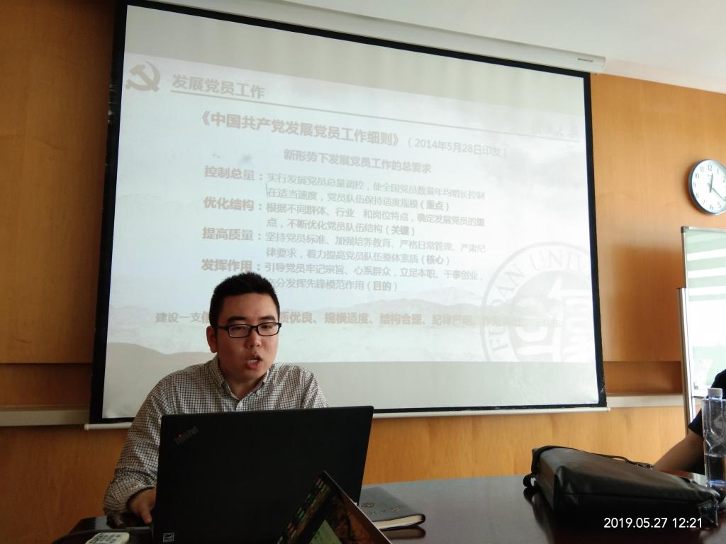 18级3班入党积极分子的管理和培养,帮助我们明确对党的认识,端正入党动机,进一步提高党员发展质量,2019年5月27日中午,经3班辅导员徐邦柱与支部17名入党积极分子进行了党章学习小组活动。徐邦柱首先向我们介绍了发展党员的基本知识以及新形势下发展党员工作的总要求,接着说明发展党员的具体流程,以及党建材料的重要性。然后由入党积极分子谈谈最近的学习生活,尤其是最近对政治理论学习的体会,向组织如实反映了自己的思想、学习、工作、生活情况和对党的认识。