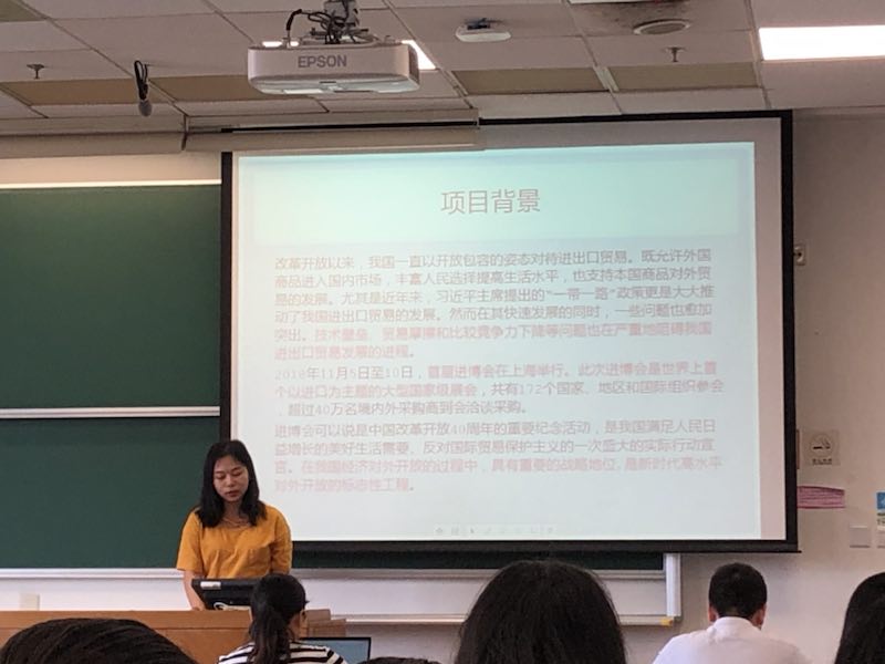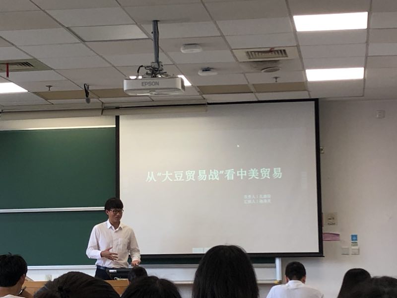 下午一时三十分,答辩准时开始。本次答辩共有九个小组参加,研究课题涵盖中外文化、乡村振兴、社会保障等方面,十分贴近社会民生。首先上台作答辩报告的是“以青年为桥看人类命运共同体的文化内涵”这一小组,他们准备充分、讲解从容,研究的视角亦十分独特,通过数据调研的形式科学直观地为大家展示了人类命运共同体背景下文化的多样性。报告结束后,老师就课题内容进行提问,考察了大家做课题研究的态度和对课题的理解。紧接着,“以青年视角谈中外文化交流现状及前景”、“乡村振兴战略下乡村旅游业与产业发展的合现状分析与路径探索——以崇明前卫村为例”等小组派代表依次上台,顺利地完成了答辩。在整个答辩过程中,相关班委严格把控时间,老师同学耐心倾听、认真思考,氛围十分融洽严谨。有些优秀的小组在选题上就考虑到了研究意义与社会热点的结合,比如从大豆贸易谈国与国之间的关系,博得了老师的好评;还有不少小组采用问卷法、访谈法、实地走访等形式,带给大家最丰富的数据和最直观的感受,让大家对这些不同的课题有了崭新的认识与别样的见解。