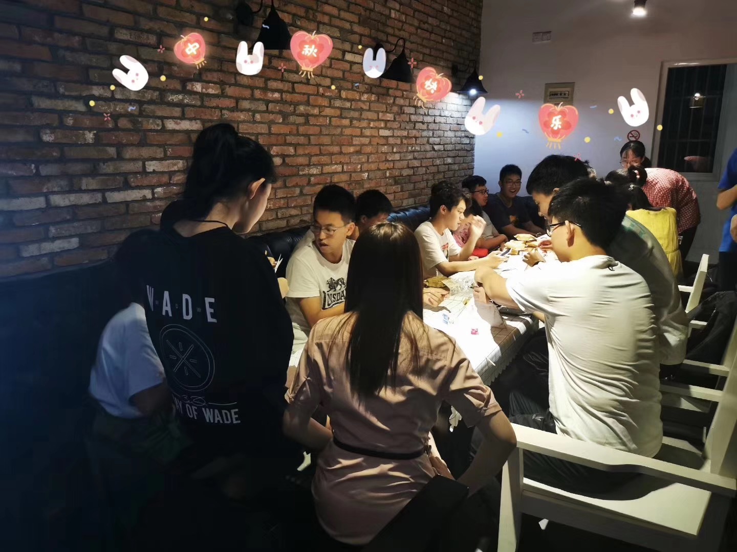 南区一期八号楼活动室。同学们围绕着长桌分组落座并分发月饼,在活动开展之前交流自己在日本av片