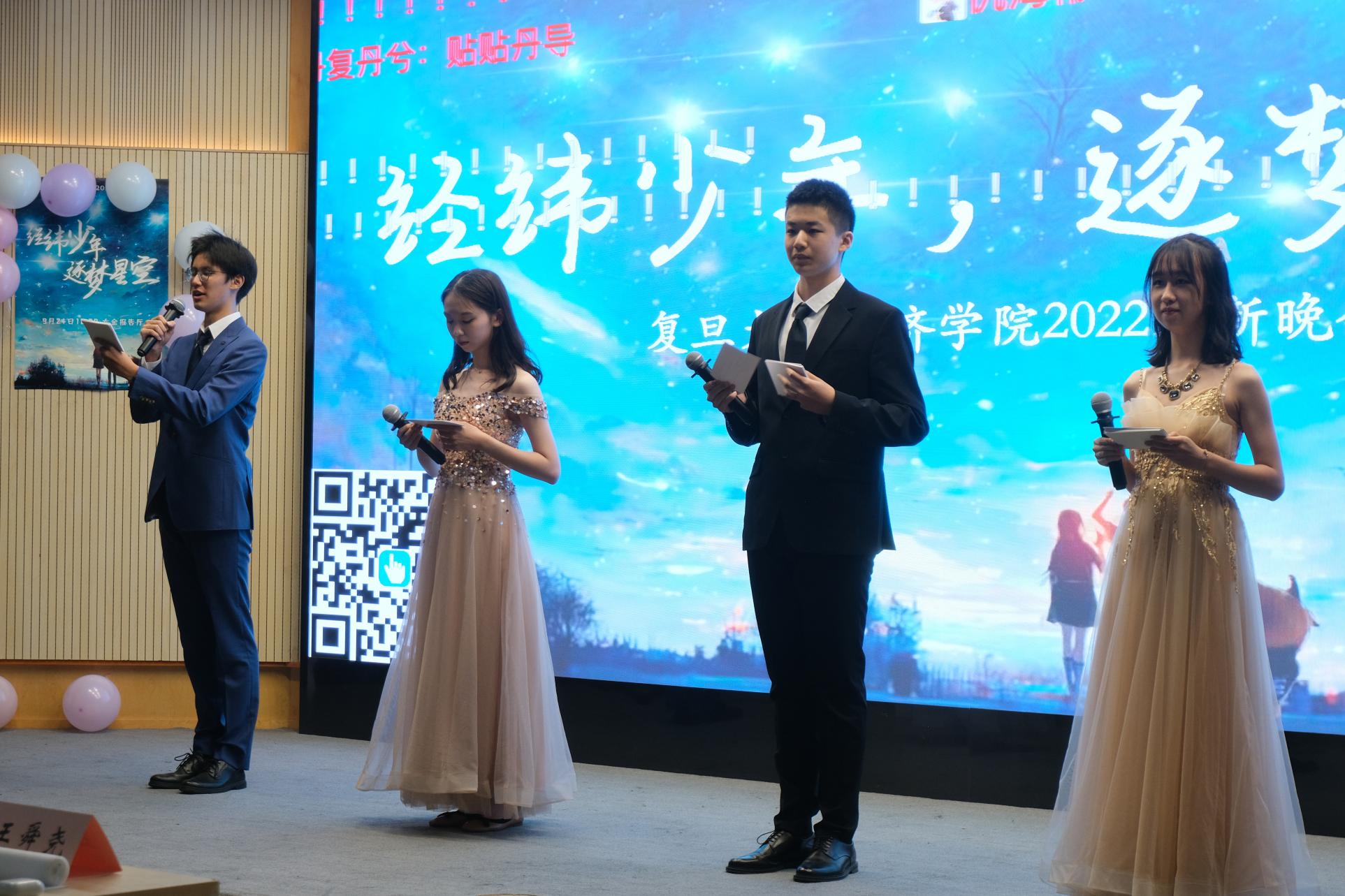 的迎新晚会。本次迎新晚会的主题是“经纬少年 逐梦星空”。21、22级的同学们一共带来了15个精彩的节目,每轮节目结束后还有游戏环节和抽奖环节。