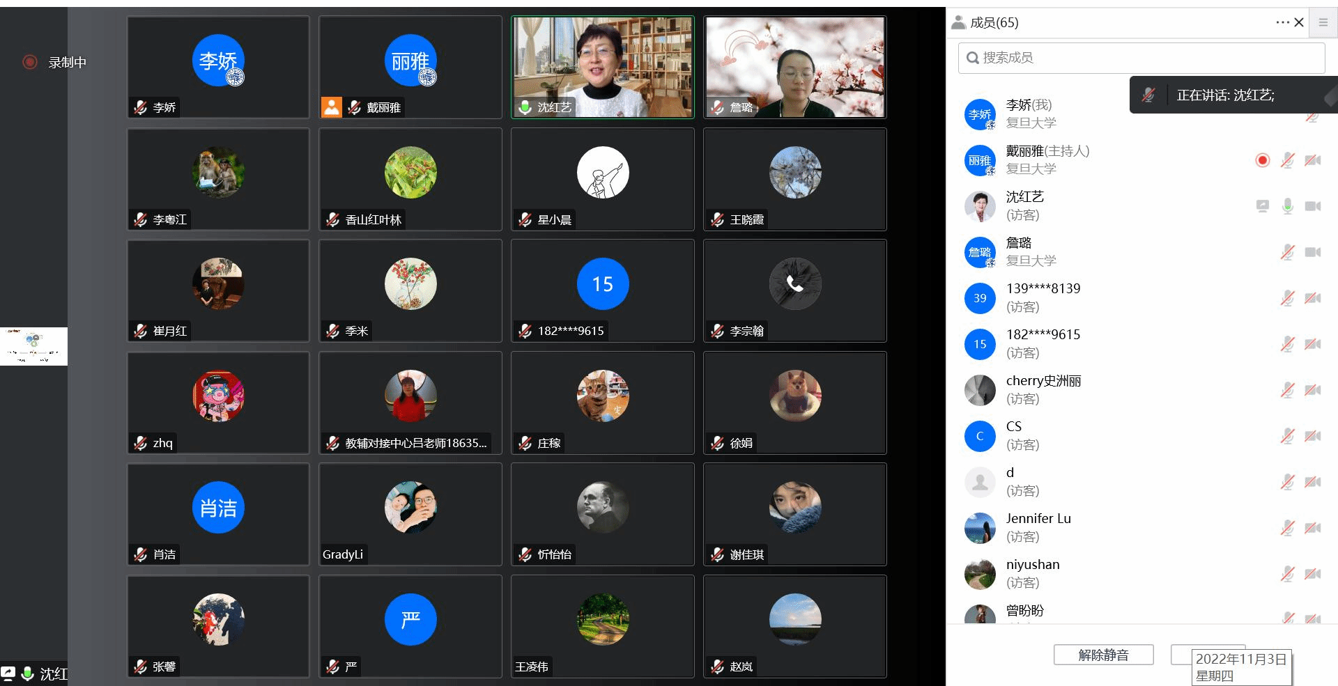 李粤江书记向沈老师的到来表示热烈的欢迎,他表示本次健康讲座积极响应了二十大对推进健康中国建设的要求,同时也为推进“第一个复旦”建设、经济学科第二个百年发展牢筑健康之基,希望老师们在防疫的特殊时期里加强自身防护,在开展日常工作的同时兼顾强身健体、平和心态。