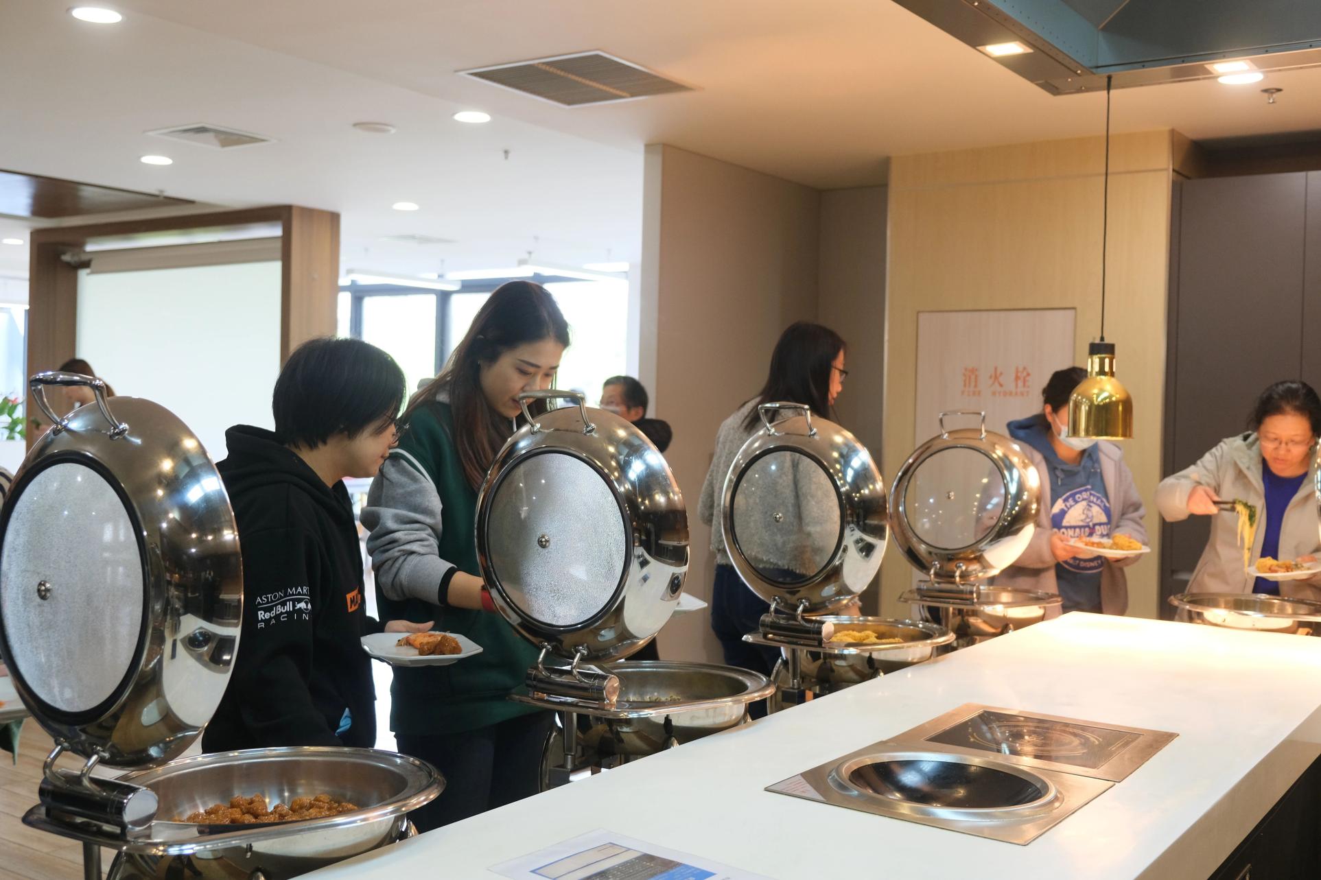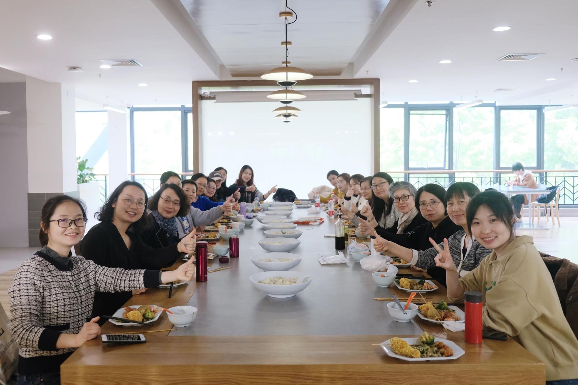 随后,美味的自助餐也新鲜出炉了,荤素搭配,营养丰富,餐厅里香气四溢。教职工们围坐在一起吃着自己包的馄饨,享用着丰盛美味的自助午餐,在欢声笑语中度过了回味无穷的春日午餐时光。