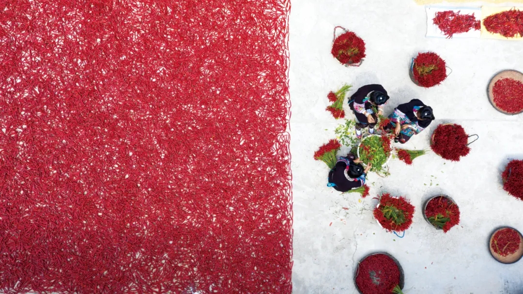 ▲2021年9月12日,贵州省从江县东朗镇摆啊村村民在分拣朝天椒 图/新华社