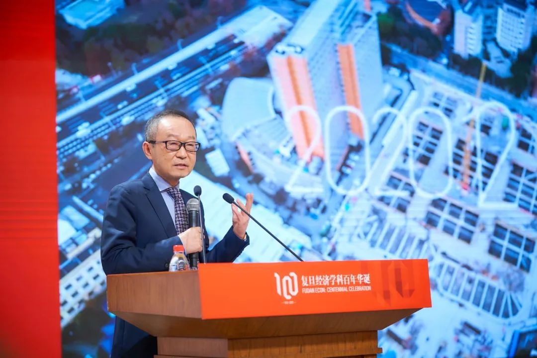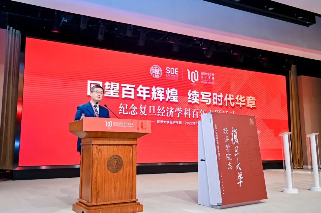 院长代表和复旦经院学生的双重身份祝贺复旦经济学科百年华诞,表示将与复旦经济学科携手共进,一起构建中国风格、中国特色、中国气派的中国经济学。