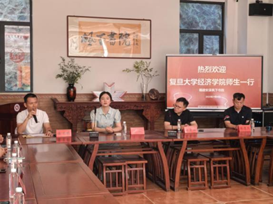 党委书记李粤江曾来此与学院安溪学子座谈交流,不仅细致询问了学子们的学业进展与成长规划,鼓励他们将所学知识与家乡发展需求相结合,更与大家共同探讨了如何依托枫下书院这一平台深化校地合作的话题,让这场新春座谈成为复旦与安溪在人才培养领域联动的一个鲜活案例。7月4日上午,实践队伍在枫下书院沉浸式感受安溪的文化教育脉动、茶产业振兴活力与区域经济发展势能。安溪县教育局副局长陈文祺、茶业发展中心主任林清杰、枫下书院创办者孙志伟等为同学们系统解读安溪文教、茶产业的发展现状与未来规划,让同学们清晰触摸到安溪这个曾经的“国定贫困县”到如今的“全国百强县”,用一片小小的茶叶撬动了百业兴旺的发展脉搏,亲身见证习近平总书记“三茶统筹”思想的实践伟力。