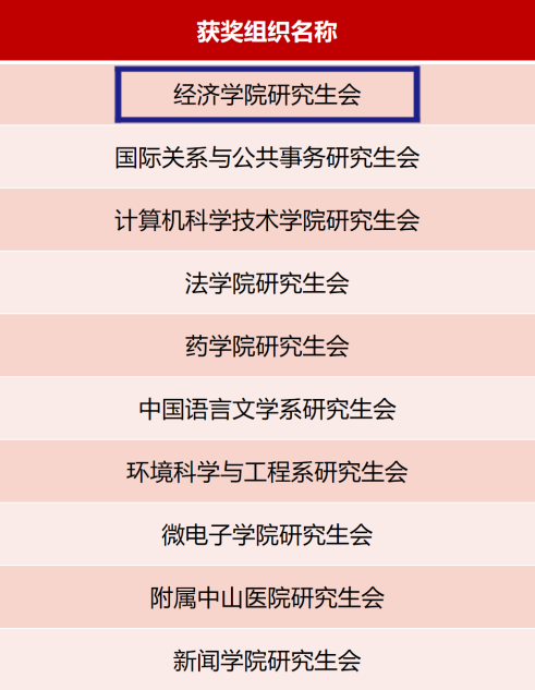 “十佳研究生团学组织”,公众号“经生经视”曾获校园最具影响力新媒体奖和校园最受欢迎学生运营新媒体奖。