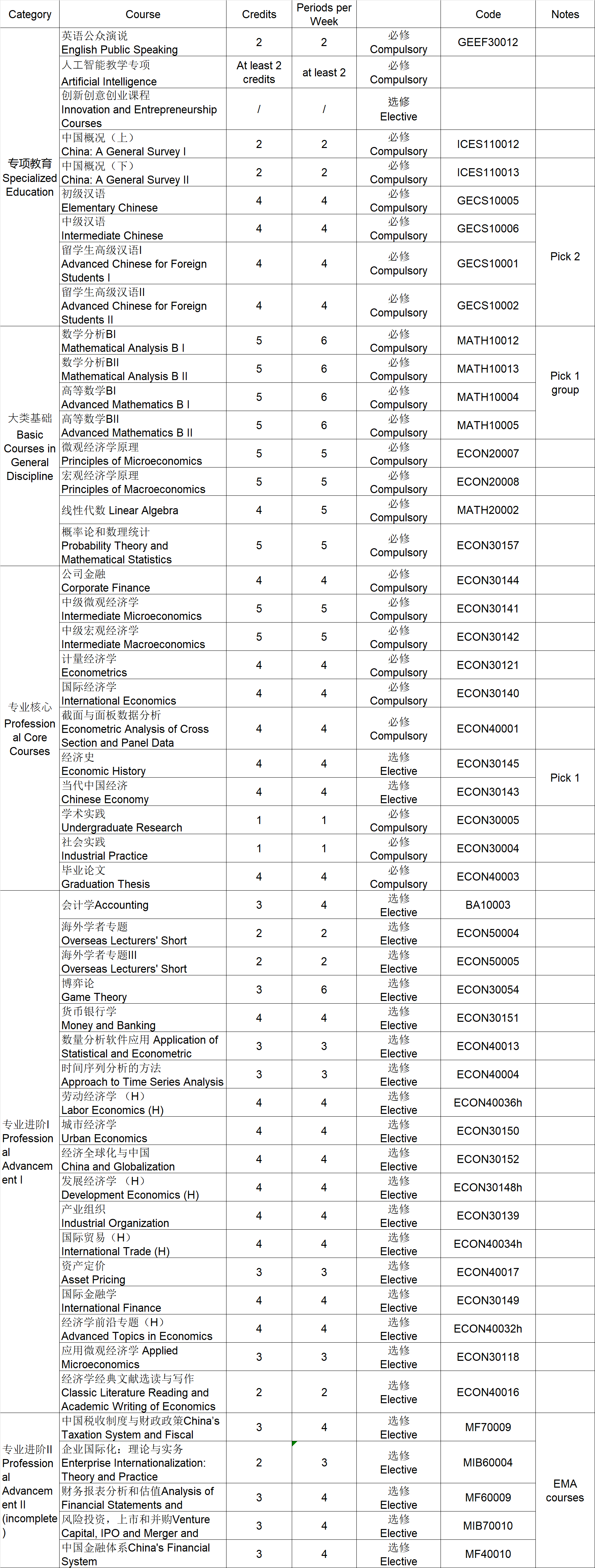 经济学专业(国际项目)专业课程列�