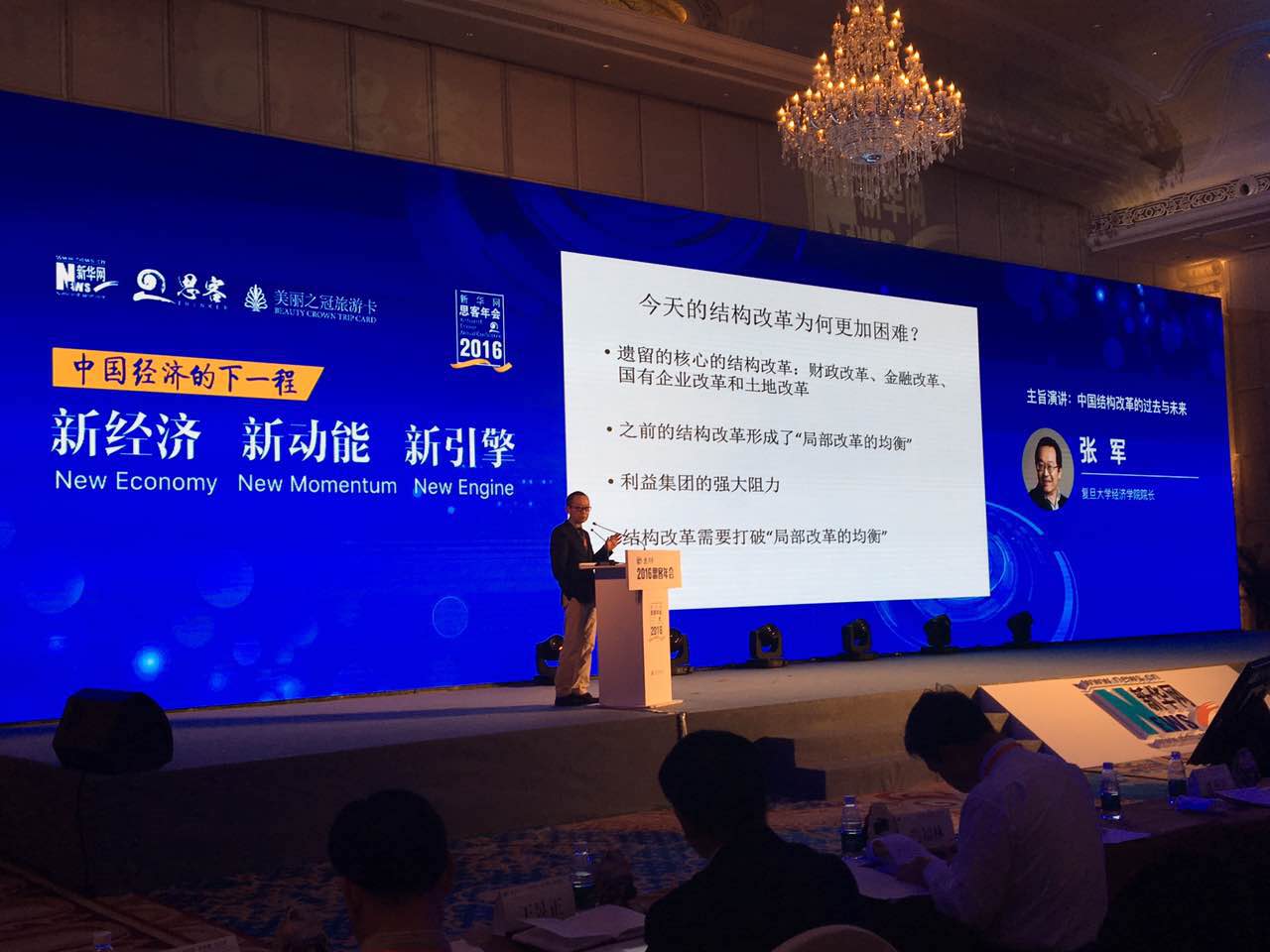 图为在“2016新华网思客年会”上,张军发表主旨演讲。 新华网记者 孙韬/摄 在12月3日举办的“2016新华网思客年会”上,日本av片 院长张军以“中国结构改革的过去...
