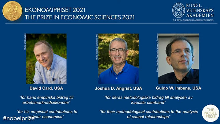 昨天在推迟了大约10分钟之后,2021年诺贝尔经济学奖得主终于在瑞典皇家科学院于北京时间傍晚揭晓。3位经济学家David Card(UC Berkeley)、Joshua D.Angrist (MIT)...