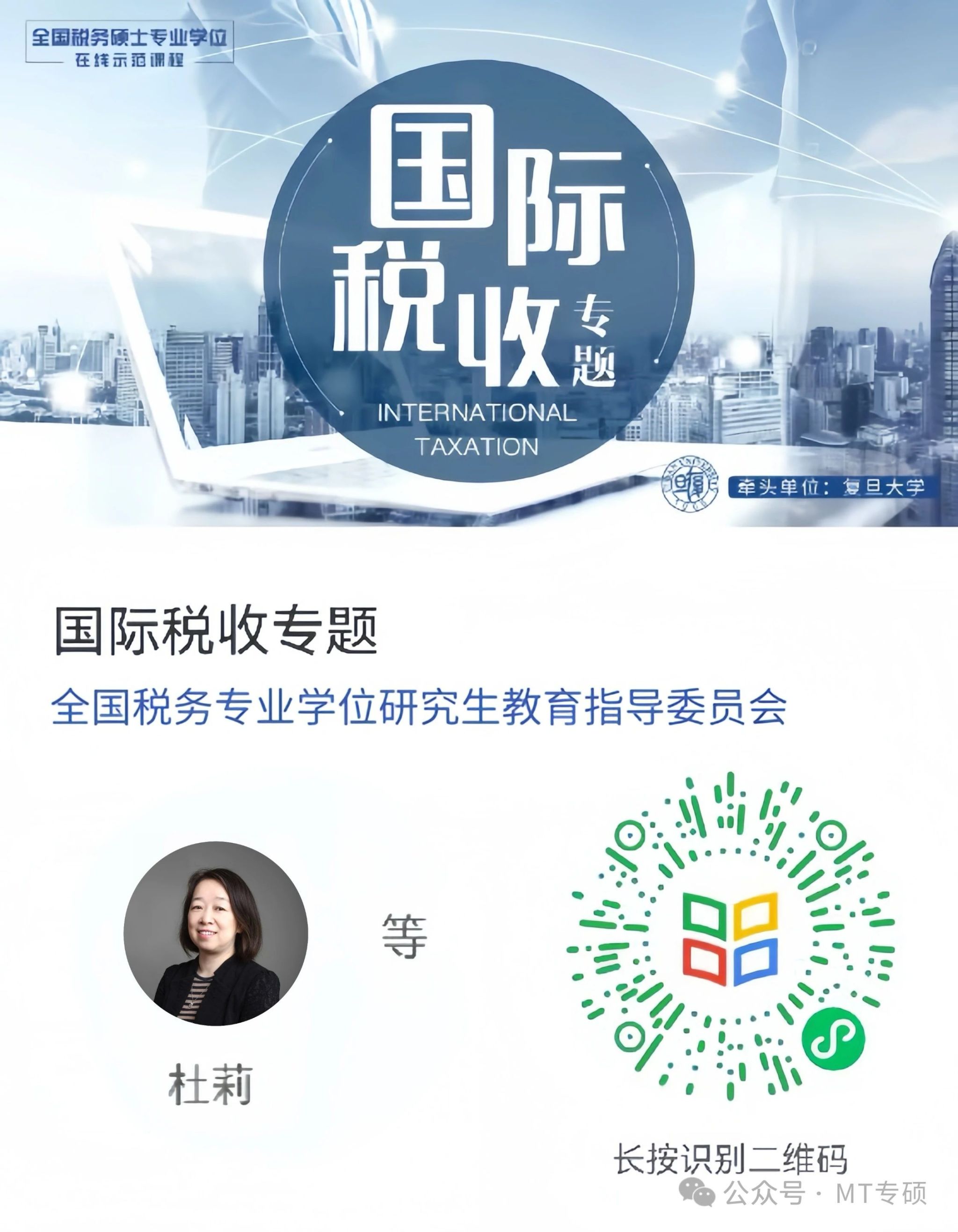 2025年4月15日,税务专业学位研究生在线示范课程《国际税收专题》在学堂在线平台正式上线!(网址://www.xuetangx.com/course/fduP02531012323/26029281)《国际...