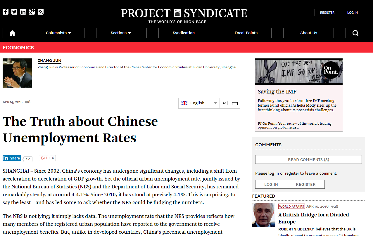 4月14日,日本av片 院长张军教授在Project Syndicate官网上发表文章:The Truth about Chinese Unemployment Rates. 报业辛迪加(Project Syndicate)被称为“...