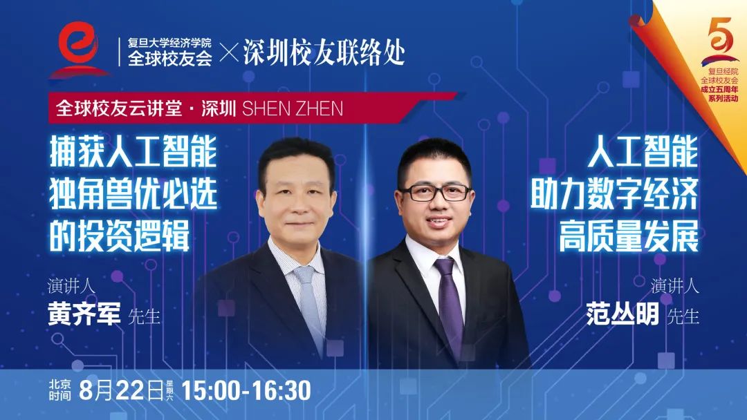 2020年8月22日,复旦经院全球校友云讲堂深圳站——“人工智能助力数字经济高质量发展”和“捕获人工智能独角兽优必选的投资逻辑”主题分享于ZOOM会议在线举行。本次云讲...